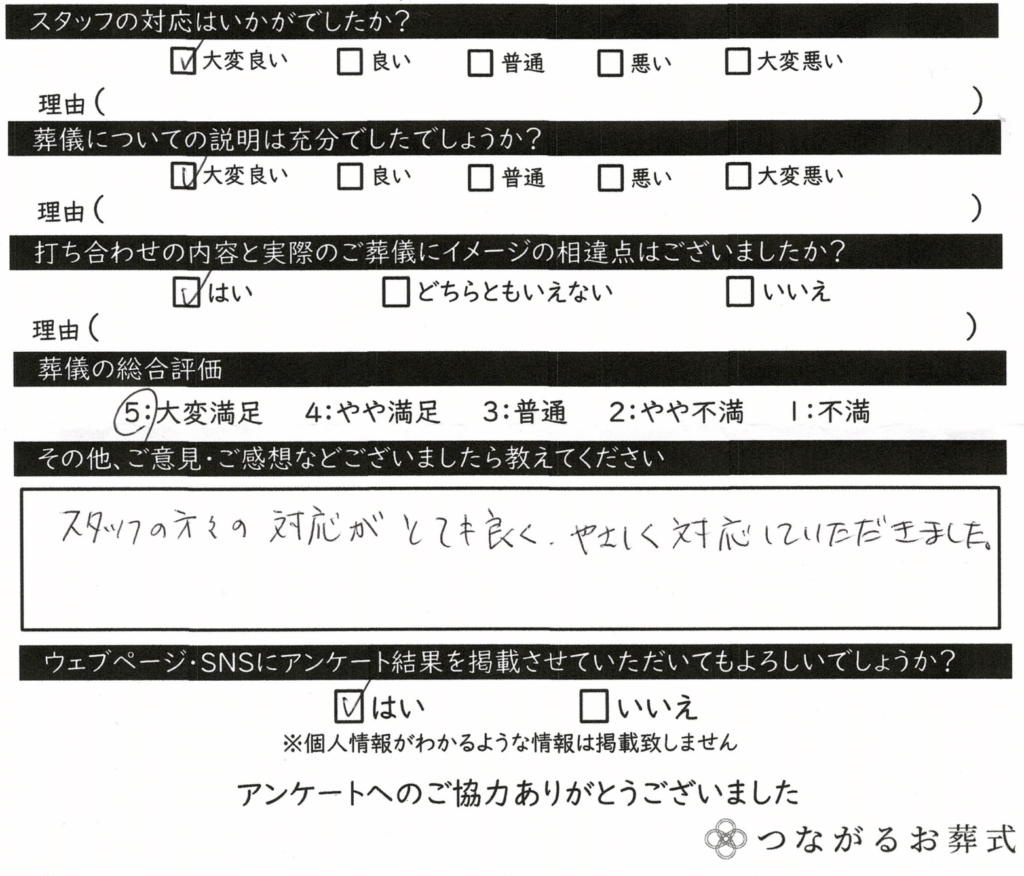 スタッフの方々の対応がとても良く、やさしく対応していただきました。
