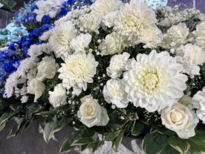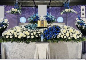 お好きだった花とお好きだったブルーの色に囲まれた温かな式となりました。