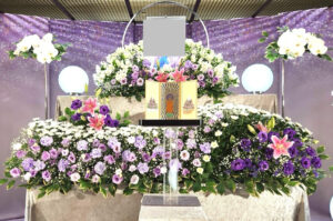 故人様がお花をよく育てていたとのことで、祭壇をグレードアップされました。